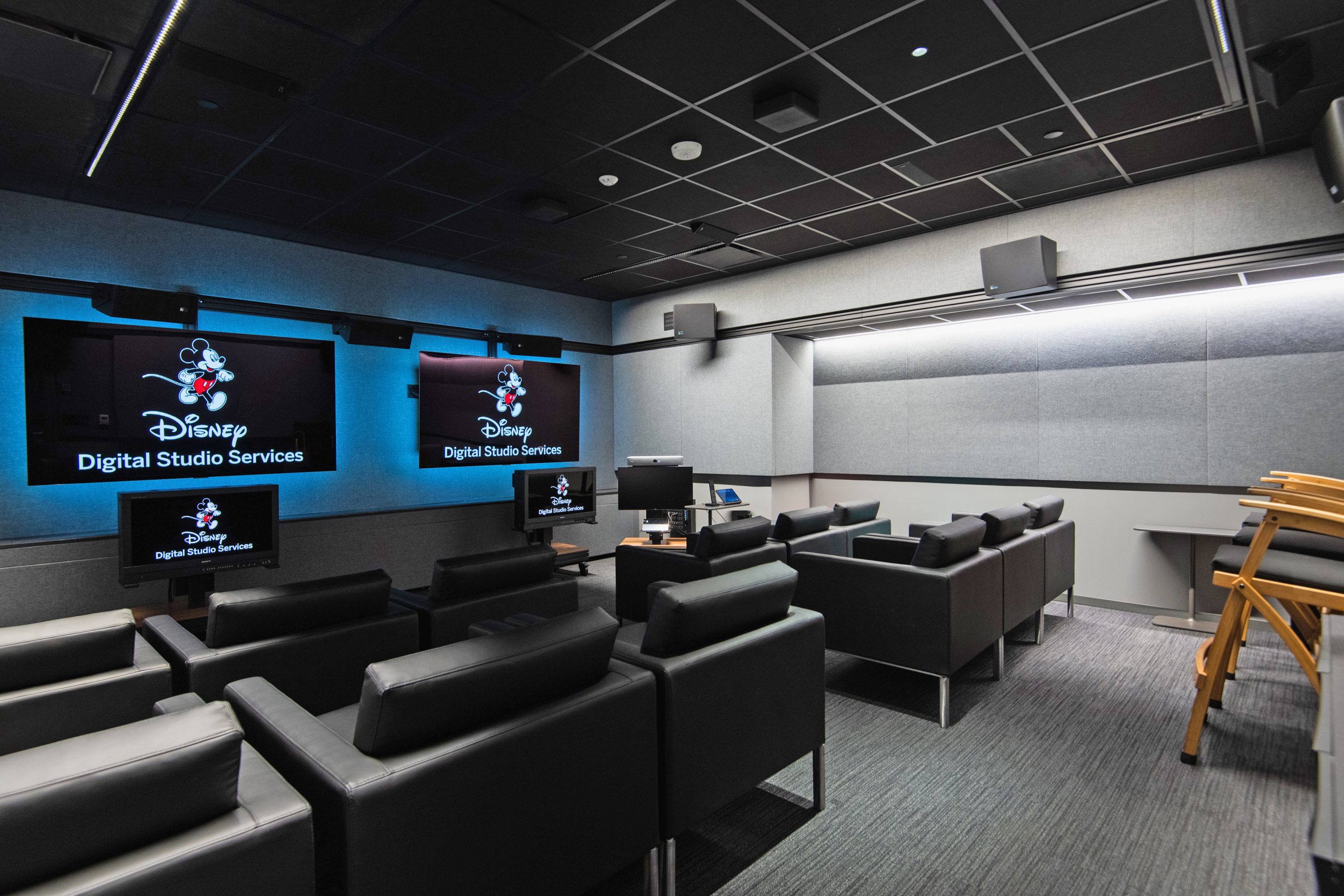 - Crestron control of local SDI router to all monitors, Audio system, Bias lighting (LG 77” monitors) and house lights.